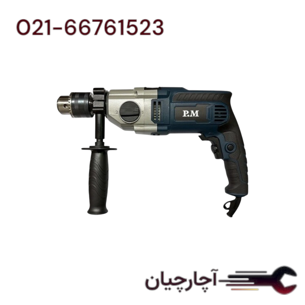 دریل 16 میلیمتری گیربکسی دوسرعته 1100 وات چکشی برند پی ام، کد کالا E15-P.M